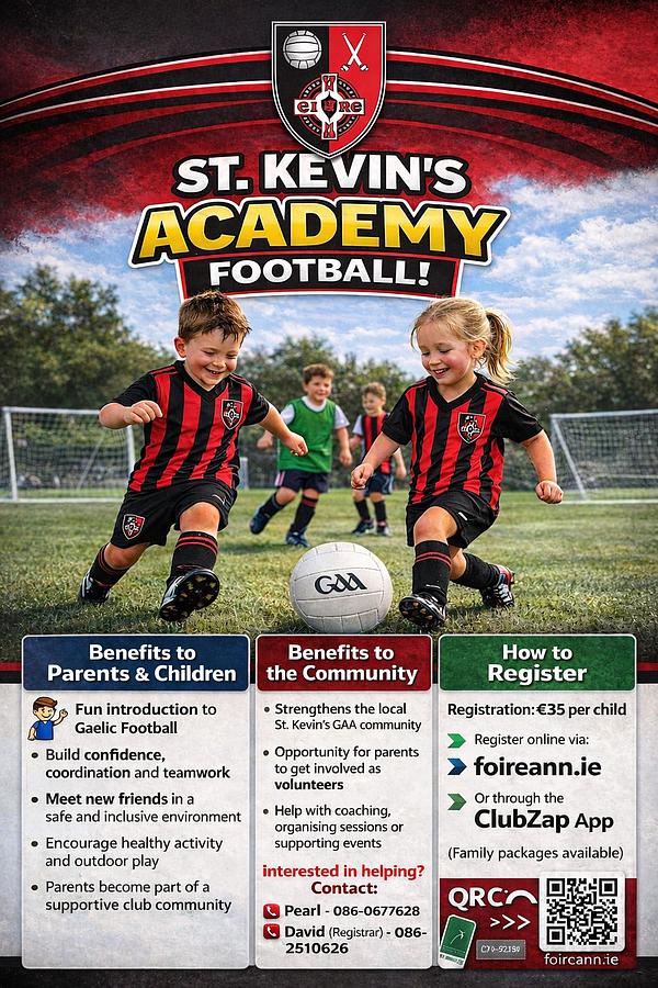 Our Academy Coaching Team are looking forward to welcoming St Kevins newest little players very soon - they cannot wait !